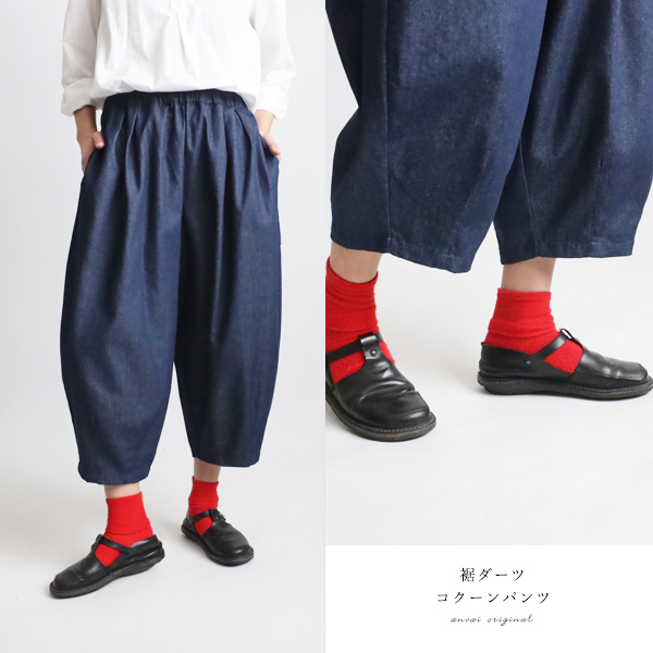 - 秋のパンツ祭り 85cm丈 甘織デニム 裾ダーツ コクーンパンツ ボールパンツ コットン H88