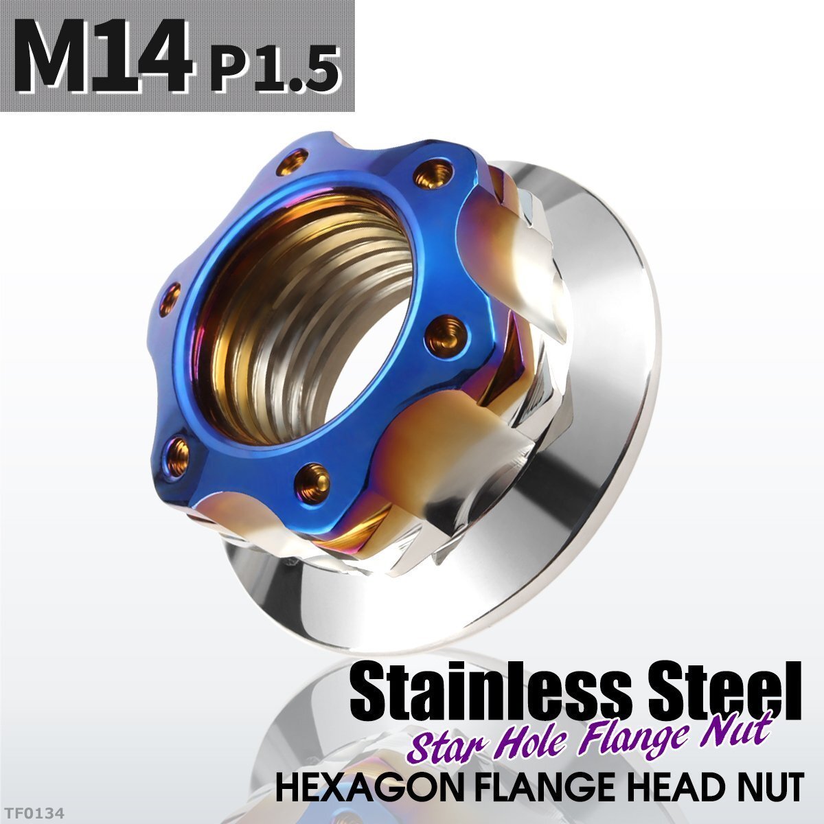 > フランジナット M14 P1.5 スターホール 外径28.5mm ドレスアップ デザイン ナット ステンレス シルバーカラー×ブルー 1個 TF0134
