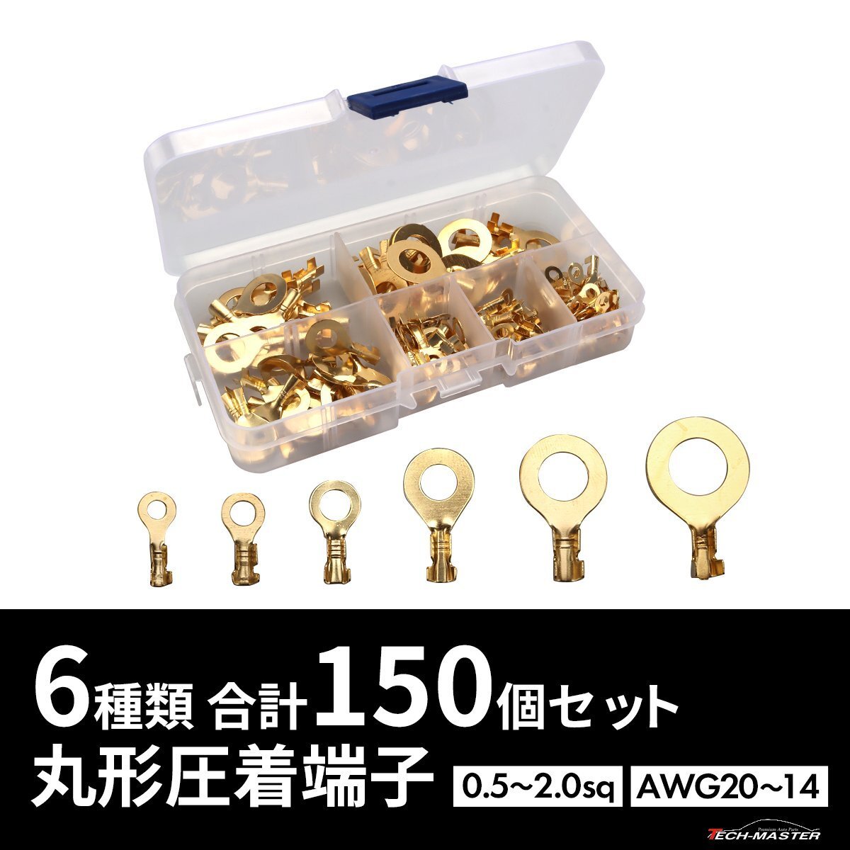 - バイク 丸形端子 裸圧着端子 R形 6種類 150個セット 収納ケース付き 0.5sq- 2.0sq IZ515