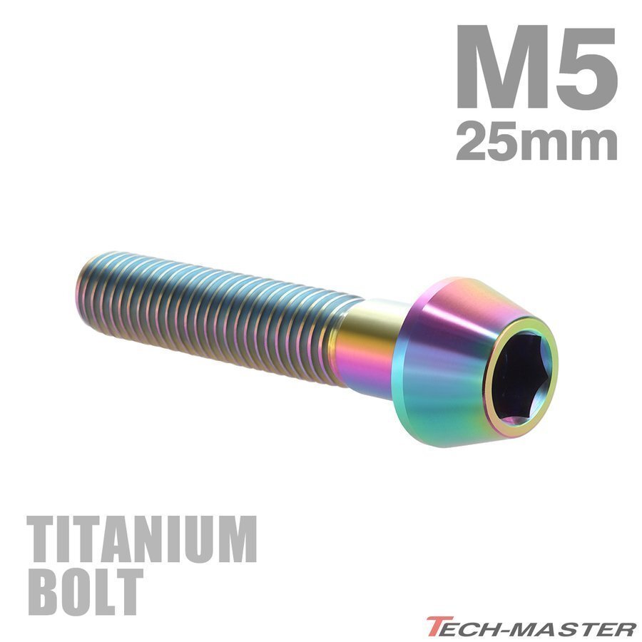 > M5×25mm P0.8 64チタン合金 テーパーヘッド 六角穴付き キャップボルト 焼きチタンカラー 虹色 ドレスアップ パーツ 1個 JA358