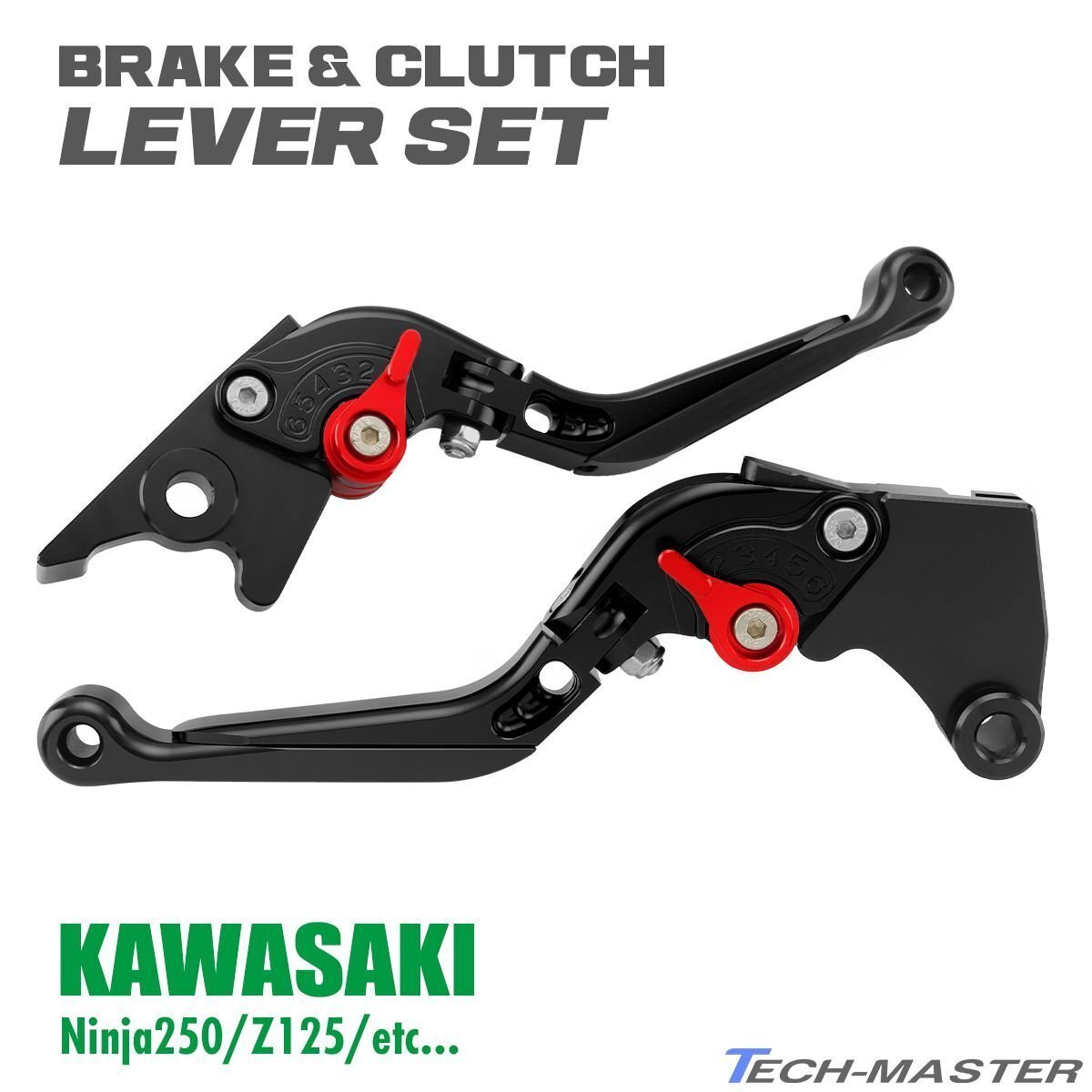 - カワサキ レバー ブラック 左右セット Ninja250 Z125 ブレーキ&クラッチ 可倒&角度&伸縮 調整機能付き SZ234-BK