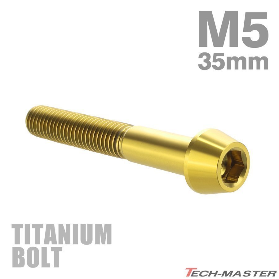 > M5×35mm P0.8 64チタン合金 テーパーヘッド 六角穴付き キャップボルト ゴールドカラー 金色 ドレスアップ パーツ 1個 JA367