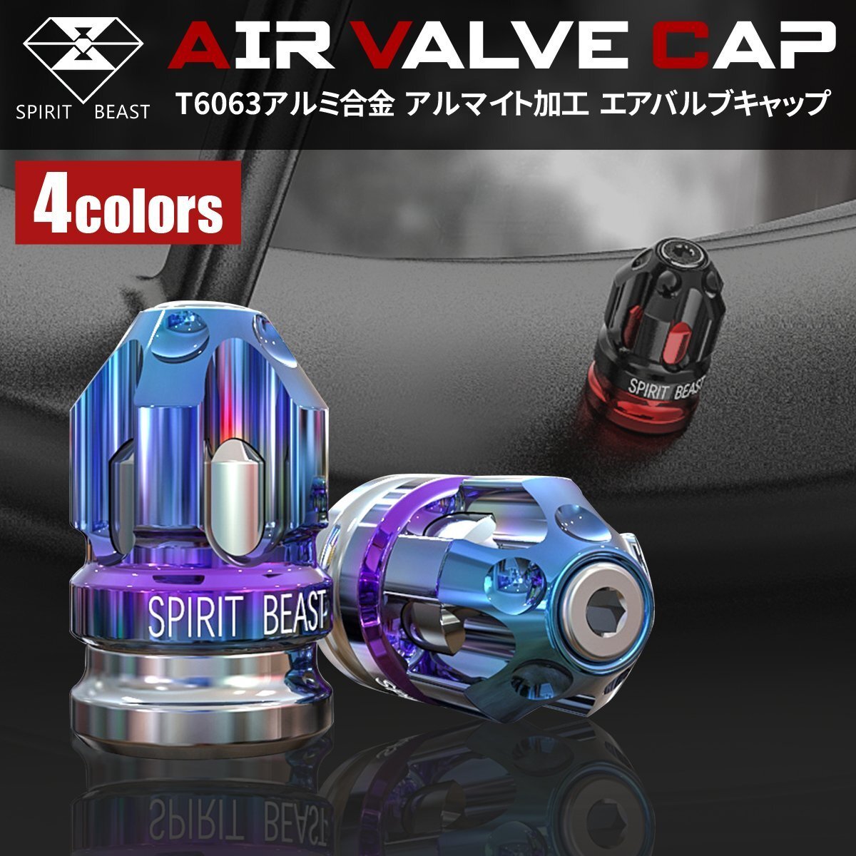 - 汎用 エアバルブキャップ タイヤ デザインバルブキャップ T6063アルミニウム アルマイト加工 シルバー×チタンカラー SZ184-ST