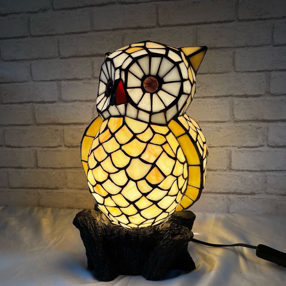 - 【点灯確認済】フクロウ ステンドグラスランプ ガラス照明 アンティーク レトロ