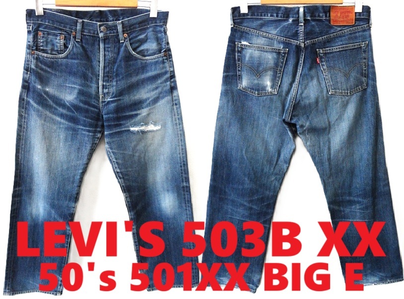> 50's ヴィンテージ 復刻/LEVI'S:リーバイス/日本製/503B XX(501XX)/BIG E セルビッチ デニム/実寸 W34/ヒゲ/ハチノス/LVC 54501 赤耳