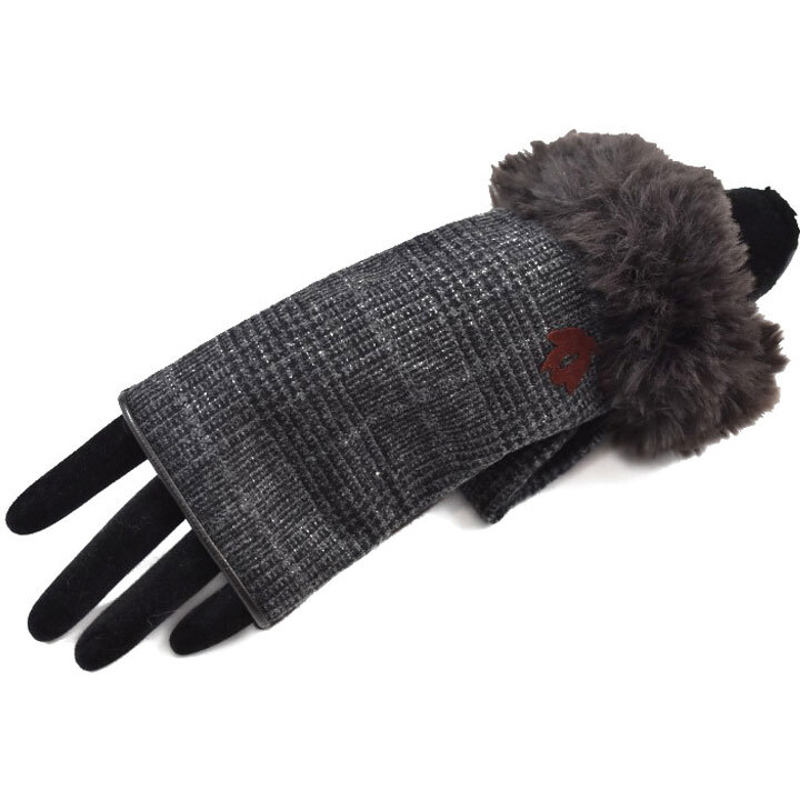 - 手袋 レディース 指なし アンテプリマ ブランド ANTEPRIMA ウール 千鳥格子 グレー ブラウン 21~22cm