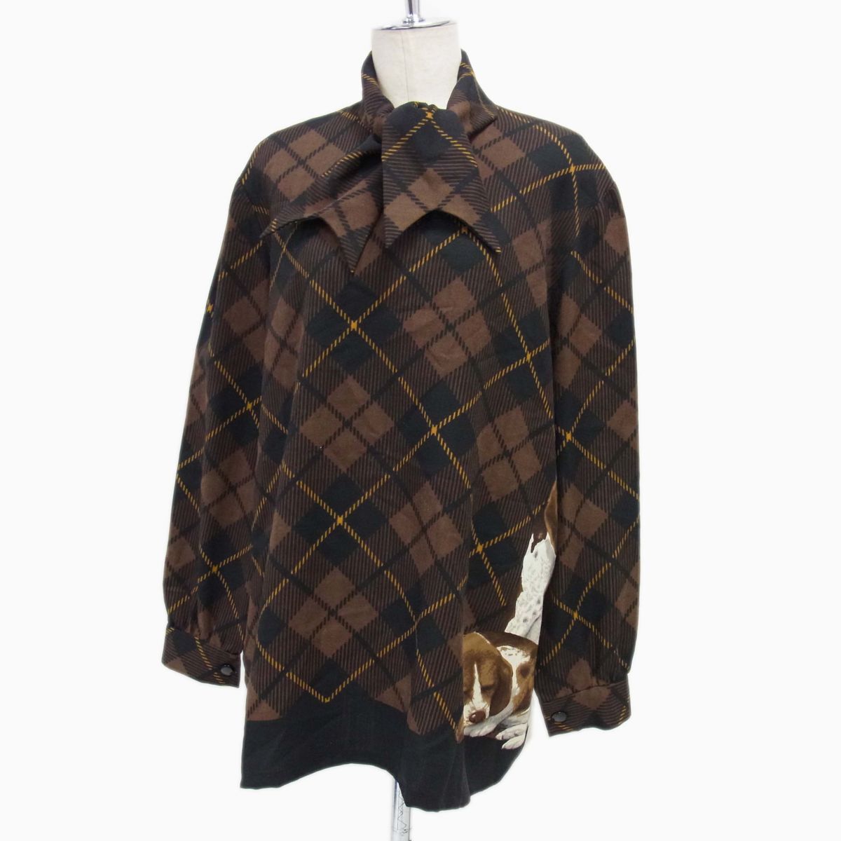- ヴィンテージ◇BALLY 襟リボンスカーフ 長袖 トップス ブラウス チュニック アーガイル柄 犬プリント バリー レディース イタリア製