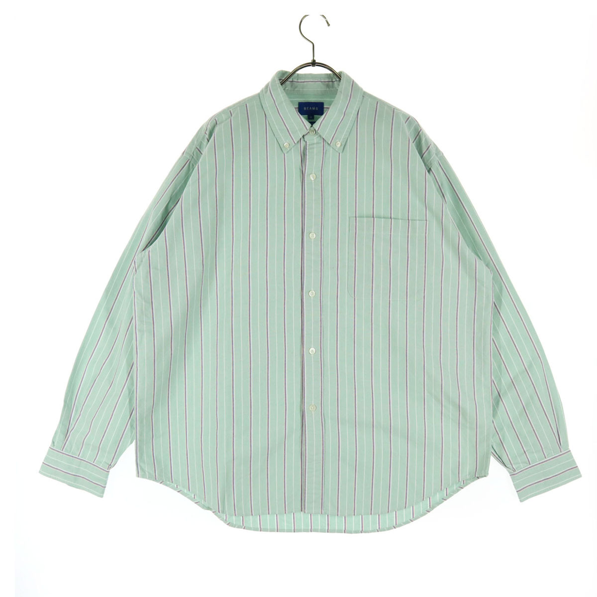 BEAMS ビームス ストライプ柄 長袖 ボタンダウンシャツ M グリーン系 胸ポケット メンズ