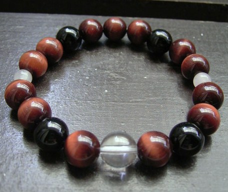 - ☆恋愛運☆レッドタイガーアイxローズクォーツxオニキスブレスレット 天然石 パワーストーン