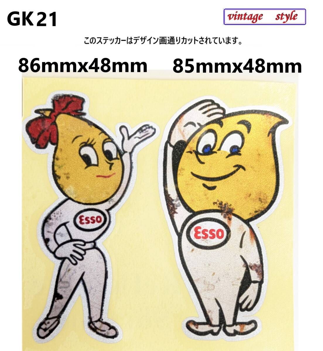 - GK21-03 特価 キラキラ ESSO エッソ ボーイ ガール ヴィンテージスタイル USA ガソリン オイルステッカー ダメージ レトロ ガレージ