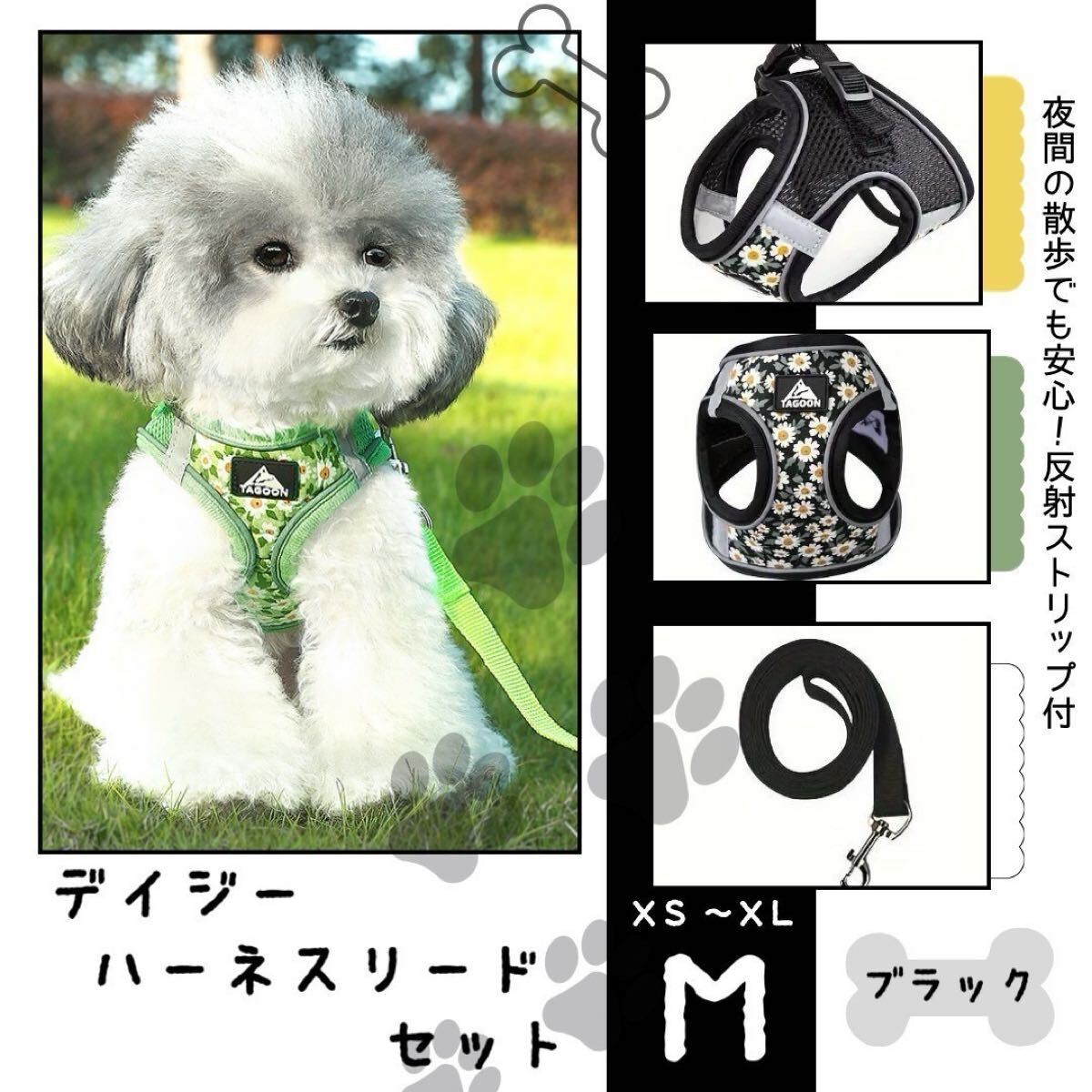 - 新品!デイジー ハーネス リード セット ブラック M 散歩 犬用 メッシュ 反射
