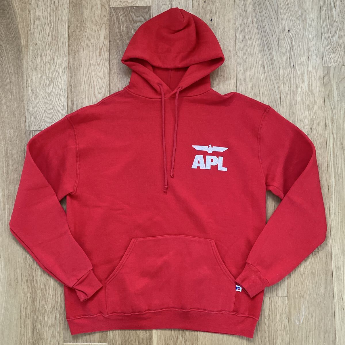 - 希少◎Russell Athletic スウェットパーカー XL 赤 APL 前後プリント XL 80s イーグルR MADE IN USAアメリカ製 ラッセルアスレチック古着