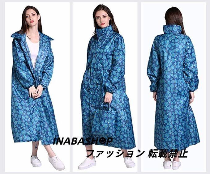 - 前開き レインコート レディース ロング丈 おしゃれ 防水 軽量 通学 通勤 収納袋付