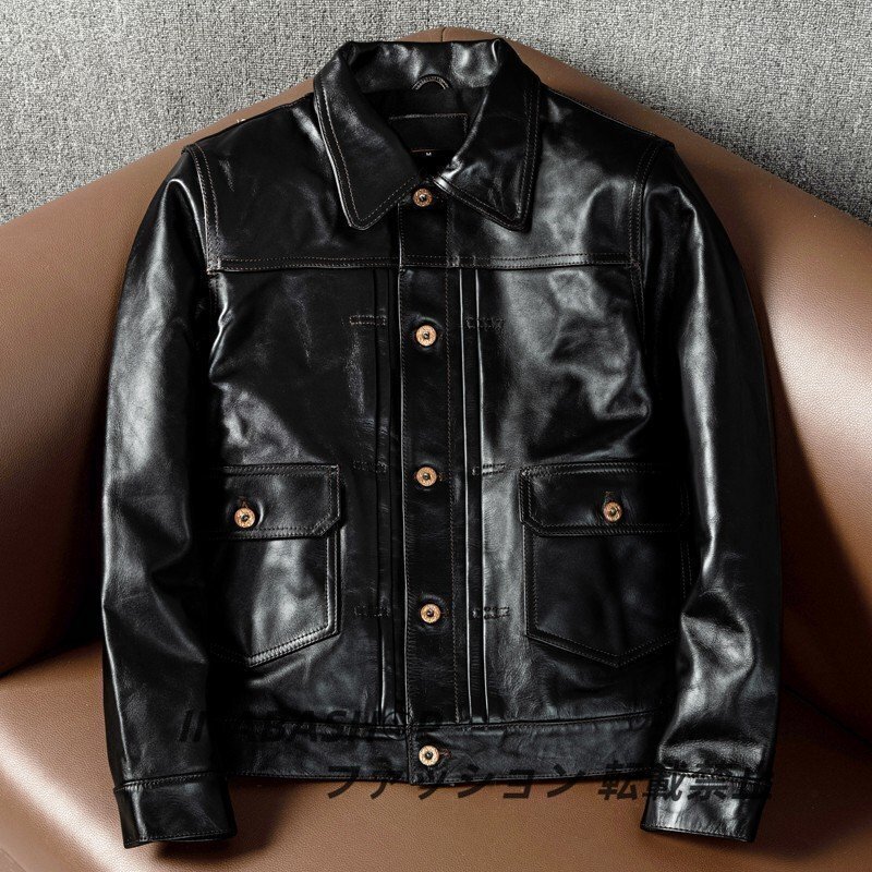 > 美品 茶芯 馬革 レザージャケット革ジャン ライダース ホースハイド本革メンズファッションバイクレザーアメカジ ホースレザーS~5XL