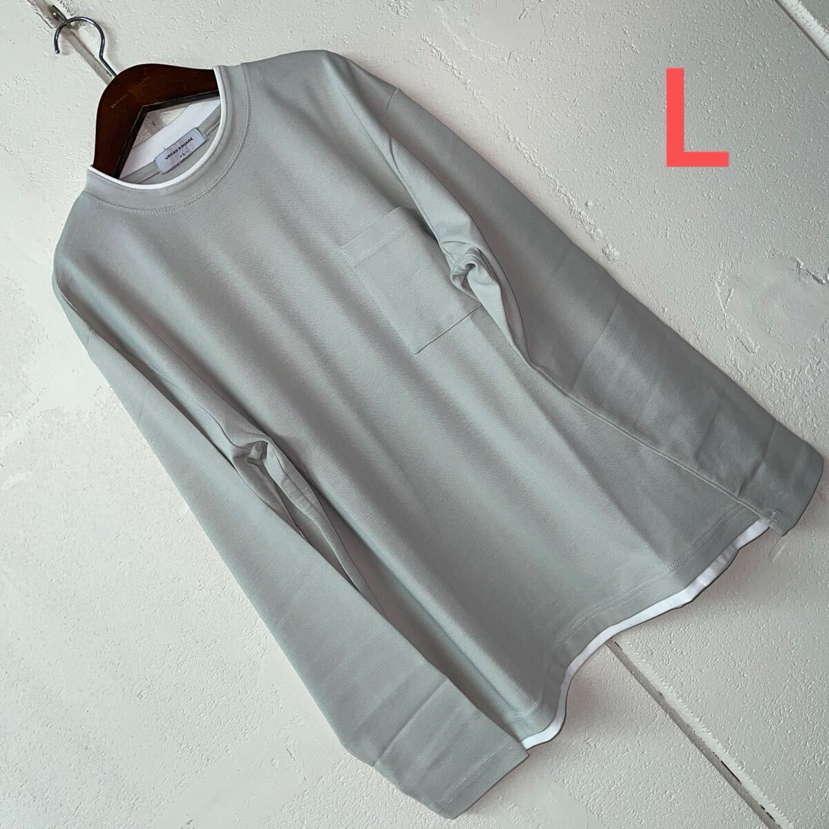 - Lサイズメンズレイヤード胸ポケット長袖カットソー グレージュ