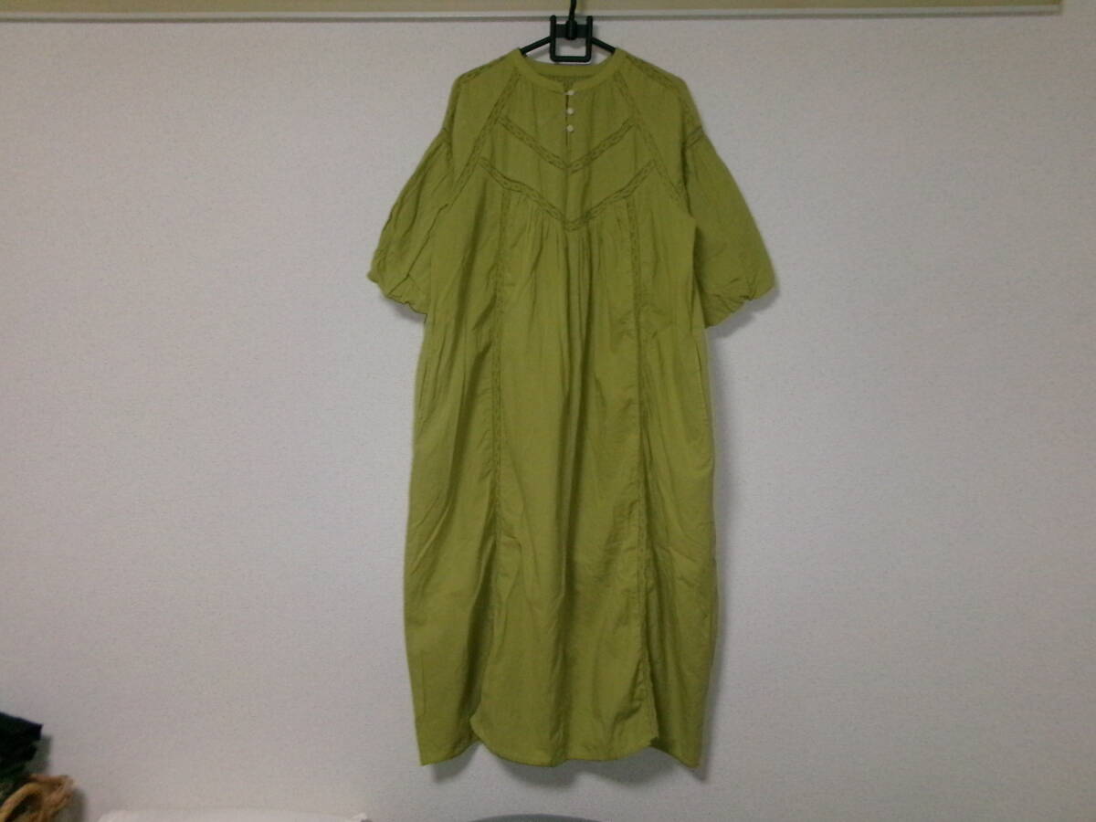- FREAK'S STOREフリークスストア☆若草色くすみグリーン黄緑5分袖チュニックワンピース☆ゆったり♪スモッグ風☆透かしレース☆大きめSsize