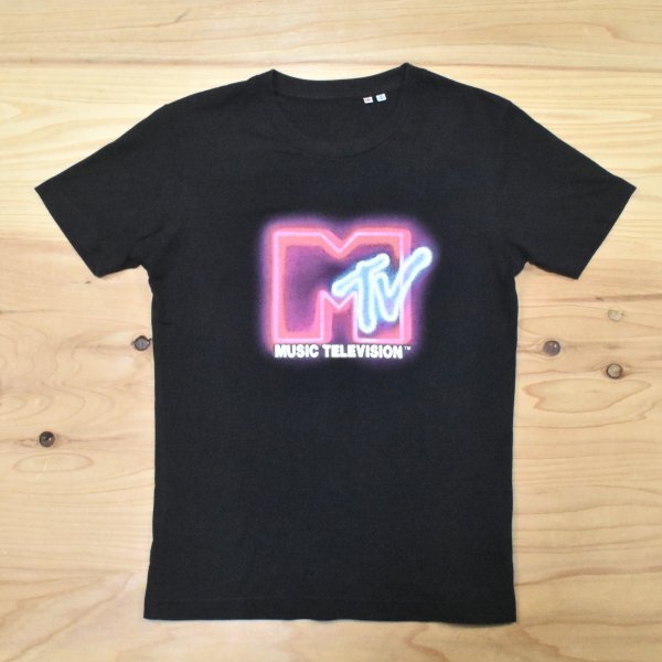 > 2012年 UT ユニクロ MTV ネオンロゴ Tシャツ sizeS 黒 ブラック 音楽 企業 会社 UNIQLO 会社 企業コラボ ケーブルテレビ ブランド古着