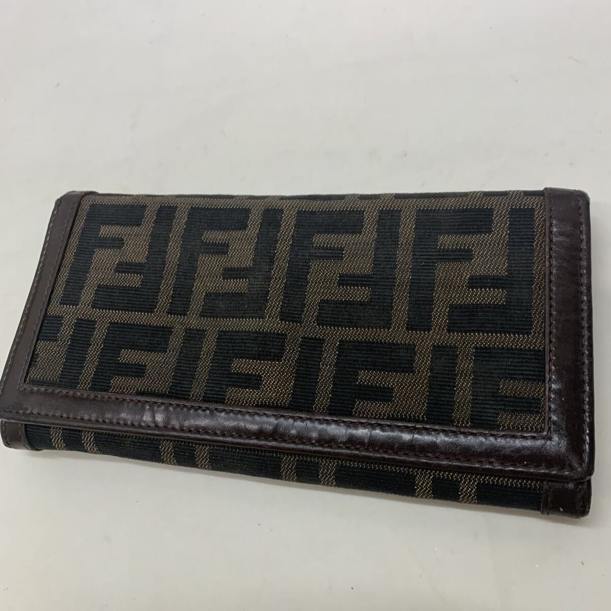 - 【美品】 FENDI フェンディ 長財布 ズッカ柄 ウォレット レザー ナイロン ブラウン系 キャンバス