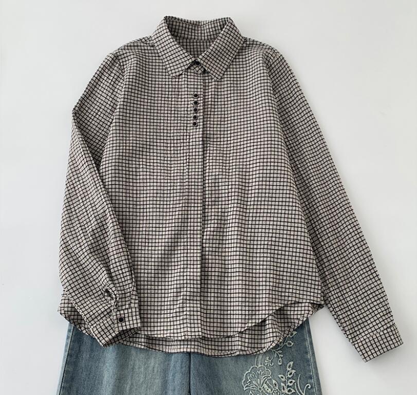 - 新入荷*トップス 大きいサイズ お洒落 カジュアル風 シャツ レディース ブラウス 通勤 オフィス OL シャツブラウス チェック柄 長袖