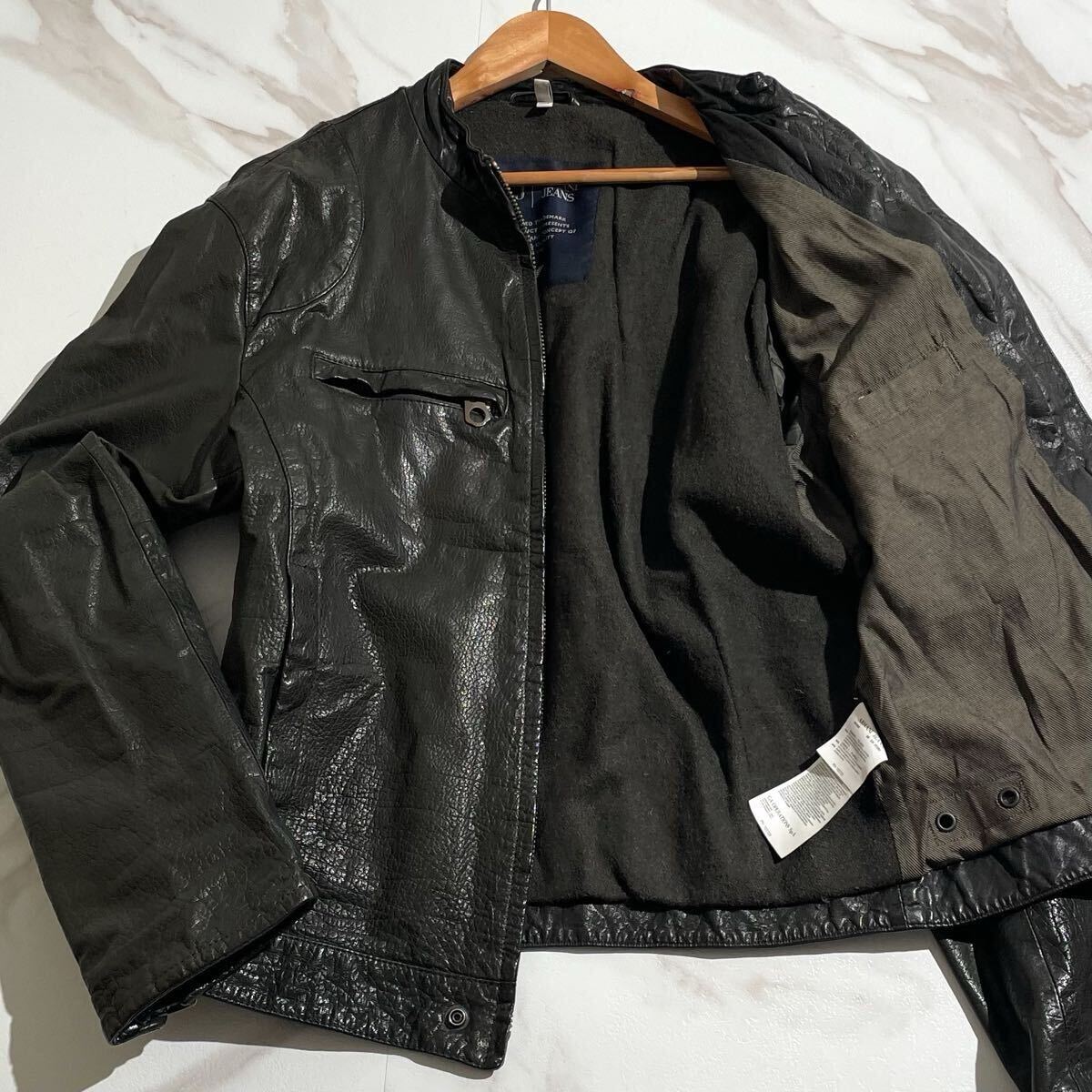 - 美品 XXLサイズ 52 ARMANI アルマーニ レザージャケット ライダース シングル ラムレザー 羊革 ブラック M メンズ 紳士服 秋冬 ノーカラー