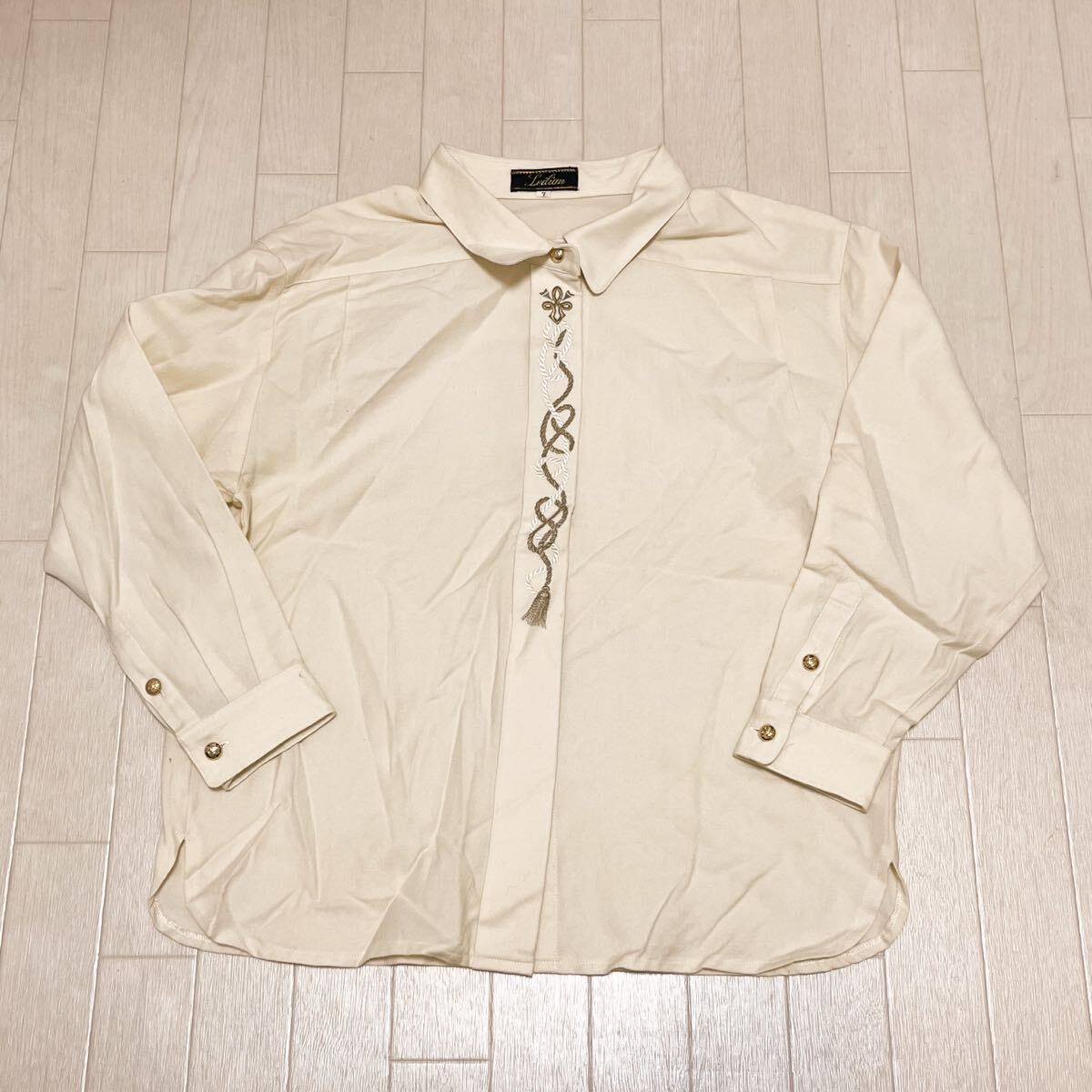 > 和830★ Leilian レリアン 長袖 ボタンシャツ 刺繍 比翼 7 オフホワイト レディース