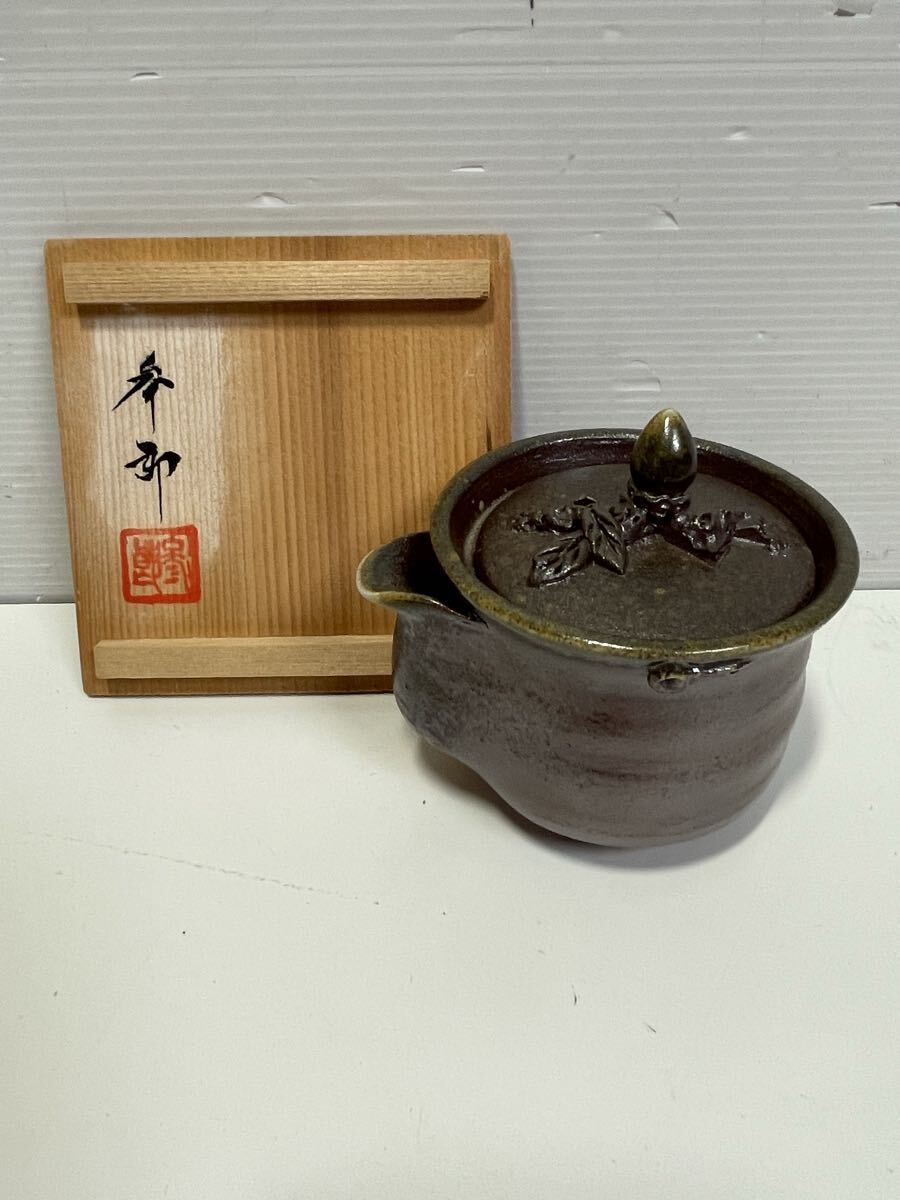 - ◆T28 うぶ品 時代物 國下三郎 造 (参印) 城山焼 手造柘榴摘宝瓶 急須 共箱 煎茶道具 古美術品