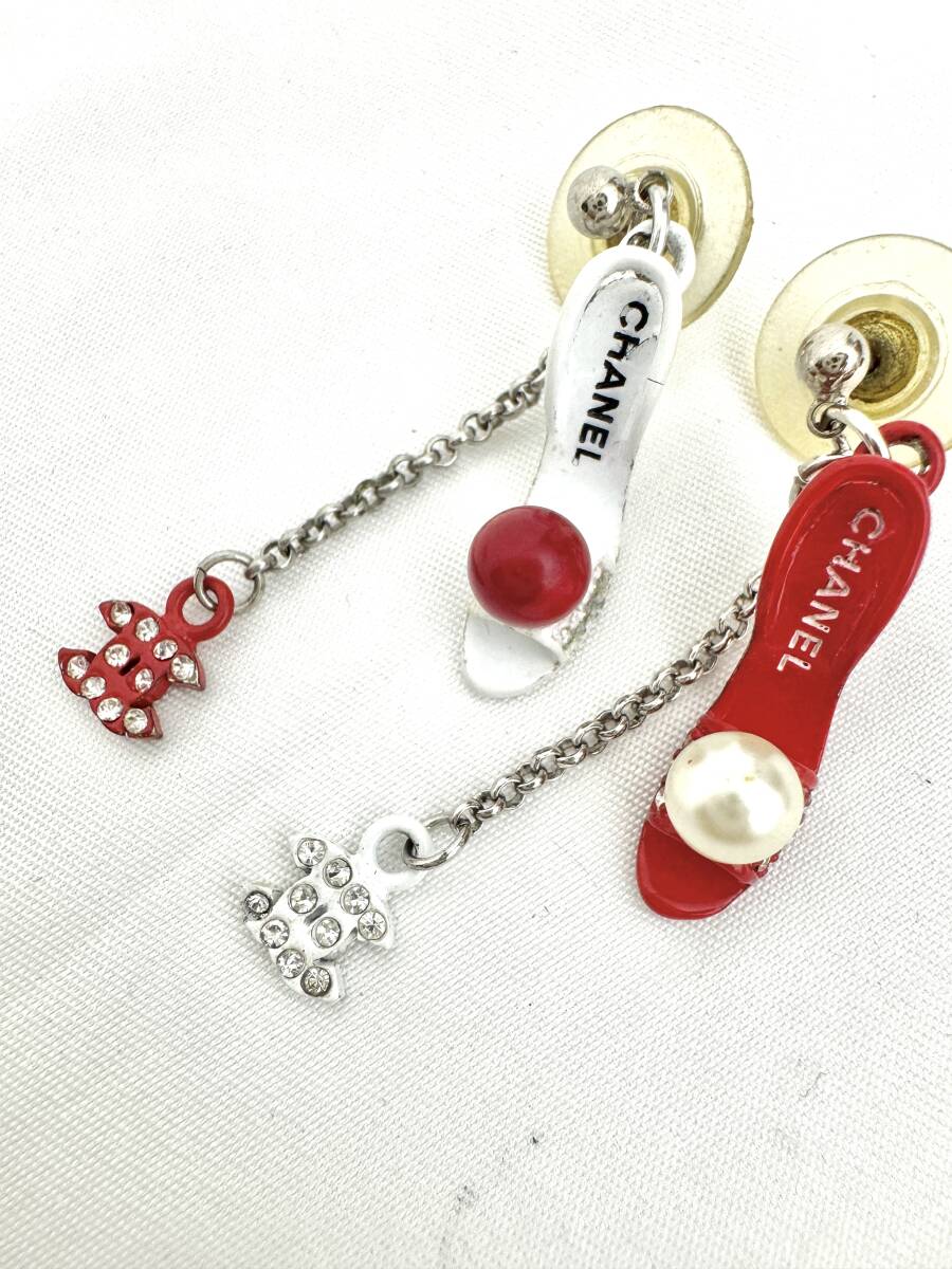 - 7I0705【本物保証】シャネル ピアス スイング チェーン ココマーク パンプス ヒール ラインストーン レッド ホワイト CHANEL