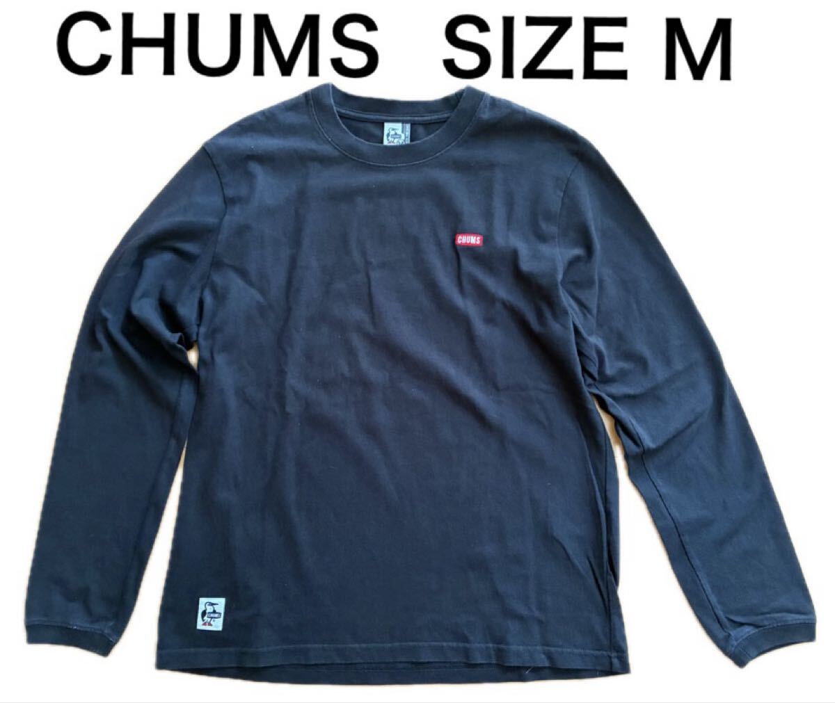 - 【送料無料】中古 CHUMS チャムス 長袖Tシャツ ロゴ刺繍 ブラック サイズM