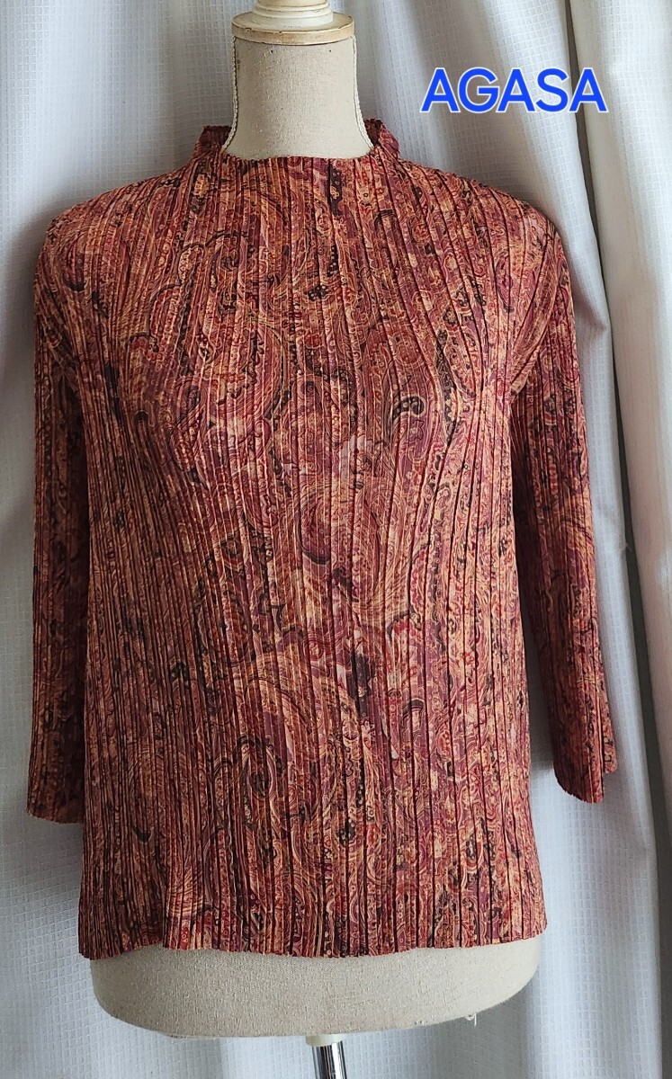 - 大変美品 AGASA 日本製 プリーツ加工ブラウス 長袖