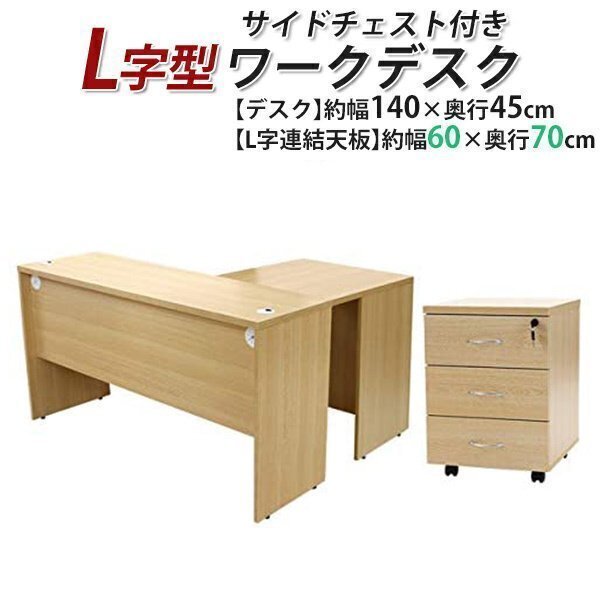 - 送料無料 ワークデスク L字型 3段 サイドチェスト 約W140×D115×H73.5 幕板 ゲーミングデスク L字デスク L型 左用 ナチュラル