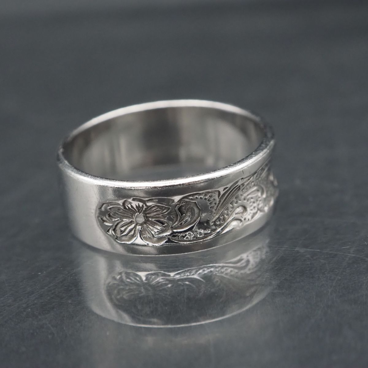 - C884 ハワイアンジュエリー b 925刻印 リング プルメリア デザイン シルバー 指輪 17号