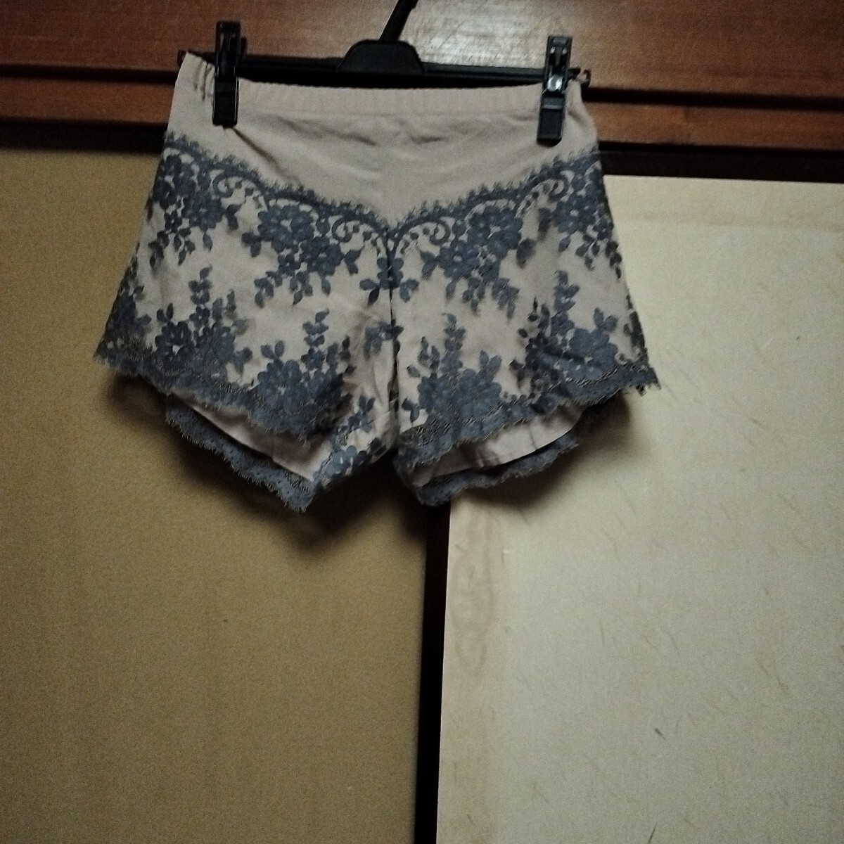 - SALON by PEACH JOHN刺繍レースショートパンツショーツベージュ×グレー