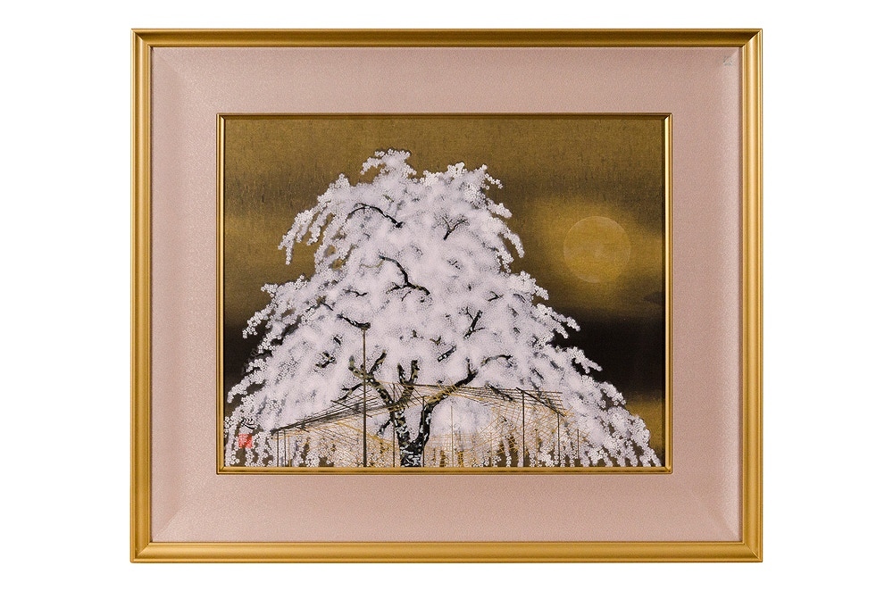 - 真作保証 美品 加山又造(京都府) 夜桜 風景画 木版画 月 櫻 景色 春 花 夜景 霞 霧 アート 巨匠 額装 日本画 版画 絵画 1993年