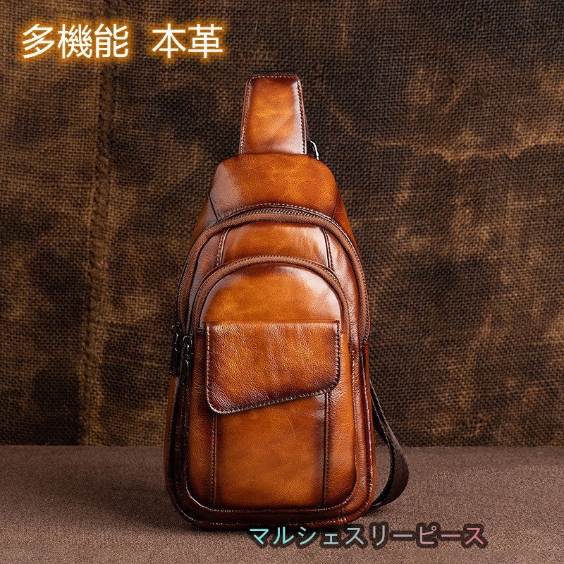 - メンズバッグ 牛革 ボディバッグ 本革 ワンショルダー 斜めがけバッグ おしゃれ 軽量 大容量 通勤 iPadmini収納可能