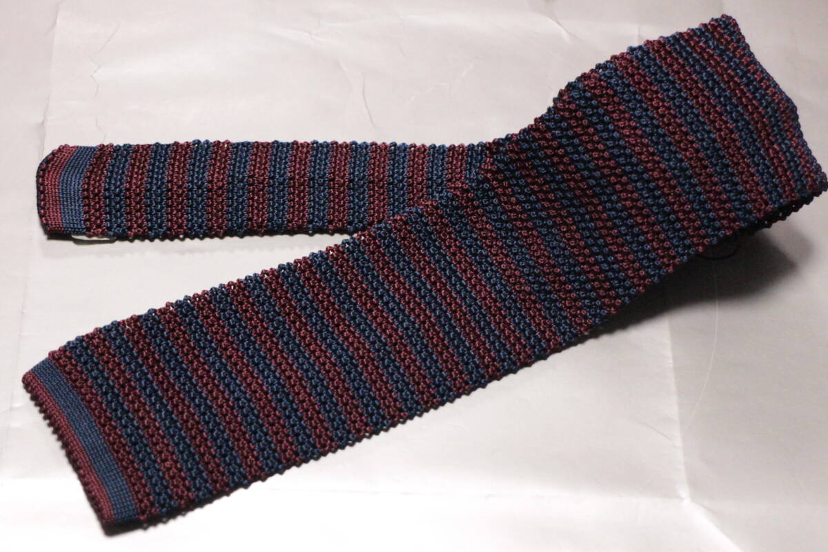 - ソッツィ*ストラスブルゴ別注新品ネクタイ大人気柄ボルドー*ネイビージャガードボーダーニットハンドメイド