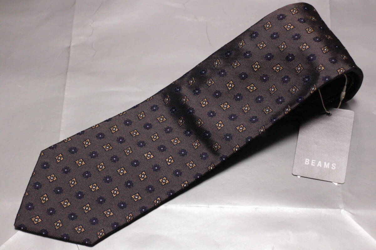 - ビームス新品ネクタイ超艶美麗ブラウン*オレンジベージュ*ダークパープル花小紋極上ジャガード織フルハンドメイド