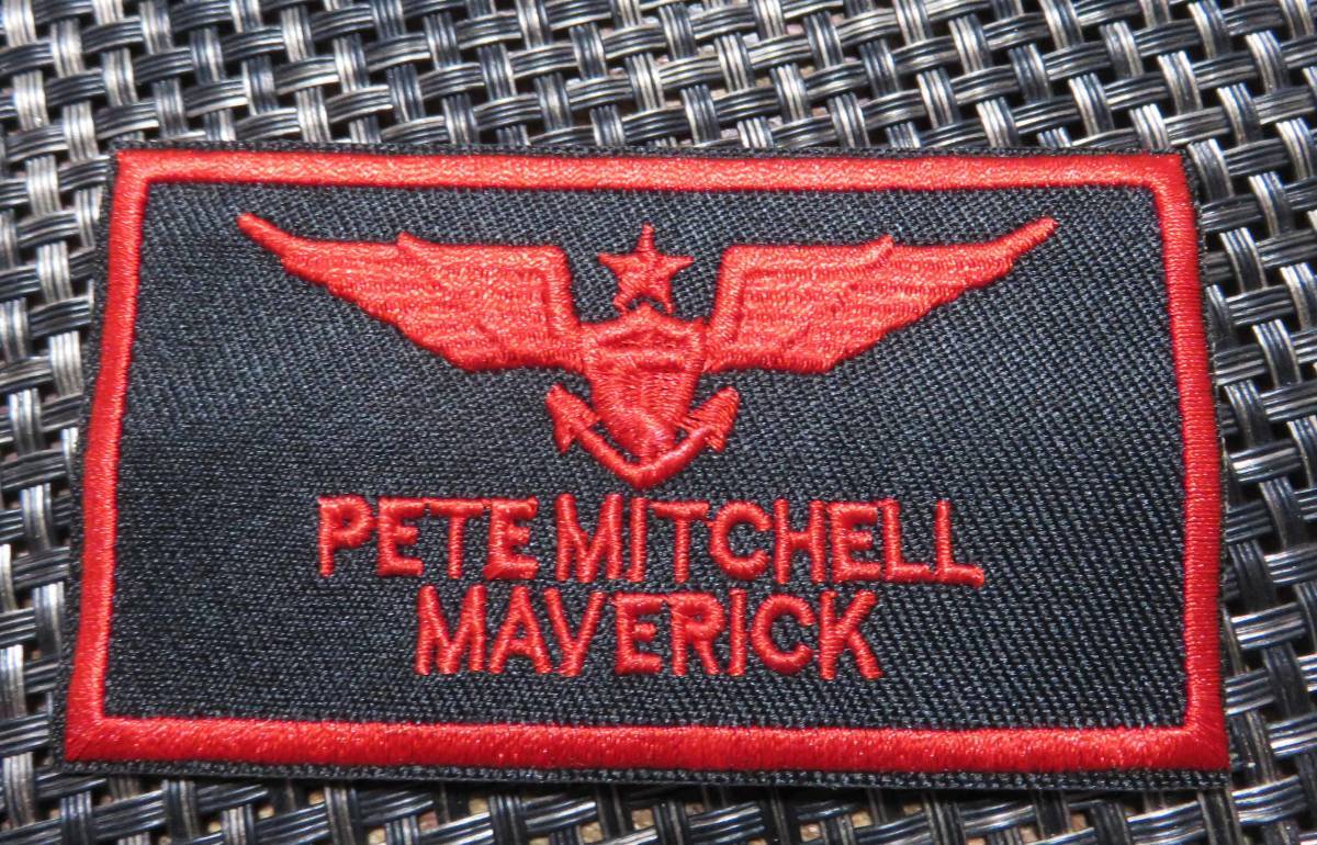 > 《圧着IR」黒赤PM》長方形■DX新品 トップガン Top Gun戦闘機 パイロット刺繍ワッペン◆アメリカ 映画 サバゲー ミリタリー■衣服DIY
