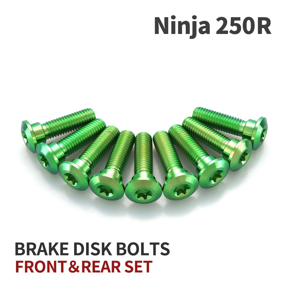- Ninja250R 64チタン ブレーキディスクローター ボルト フロント リア 9本セット M8 P1.25 カワサキ車用 グリーン JA22126