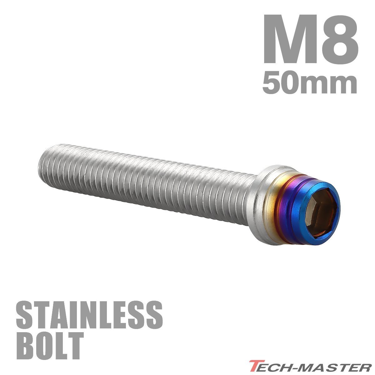 > M8×50mm P1.25 キャップボルト テーパーシェルヘッド ステンレス シルバー×焼きチタンカラー エンジン 車 バイク カスタム 1個 TB0877