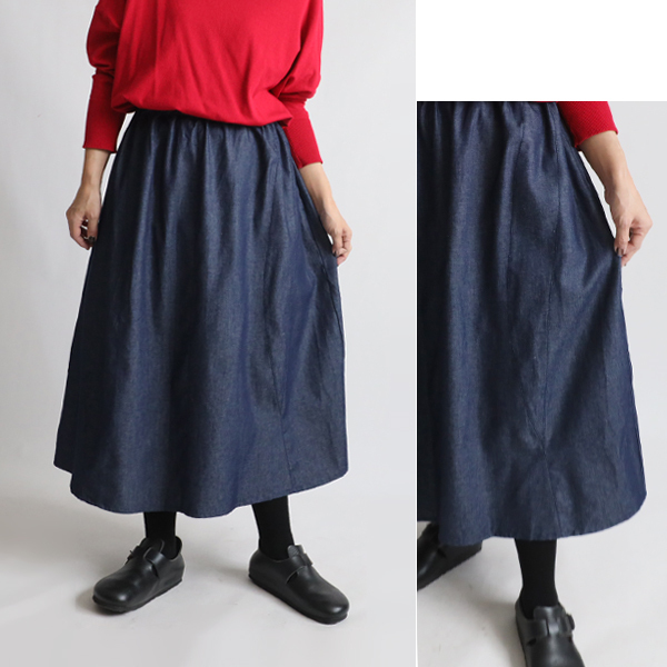 > 送料無料 秋の新作 愉快なスカートまつり 80cm丈 パッチワーク ギャザー スカート 甘織デニム デニム Y87C