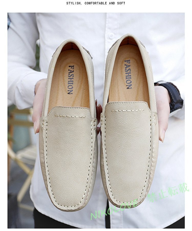 - 新品 ローファーメンズ スリッポン 春夏秋 紳士靴 ドライビングシューズ 24cm~28.5cm ベージュ 26.5cm