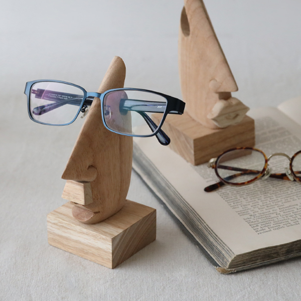 - 秋SALE 無塗装 天然無垢ウッド メガネスタンド ひげ ちょび髭 眼鏡 インテリア ペア W73D