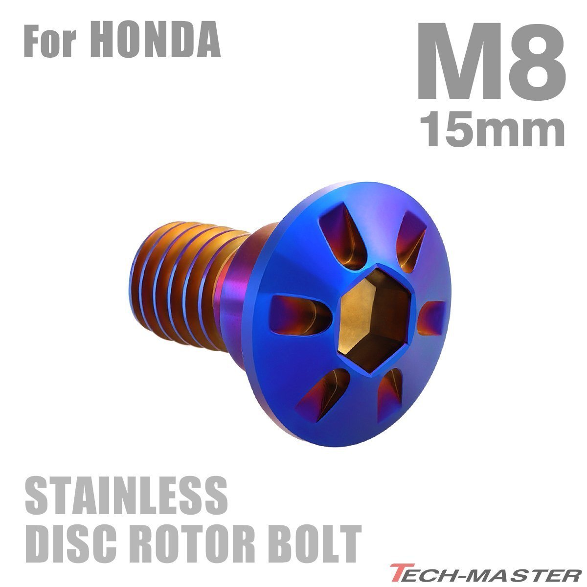 > M8×15mm P1.25 ブレーキディスク ローター ボルト デザインヘッド ステンレス ホンダ車用 HONDA 焼きチタンカラー カスタム 1個 TD0125