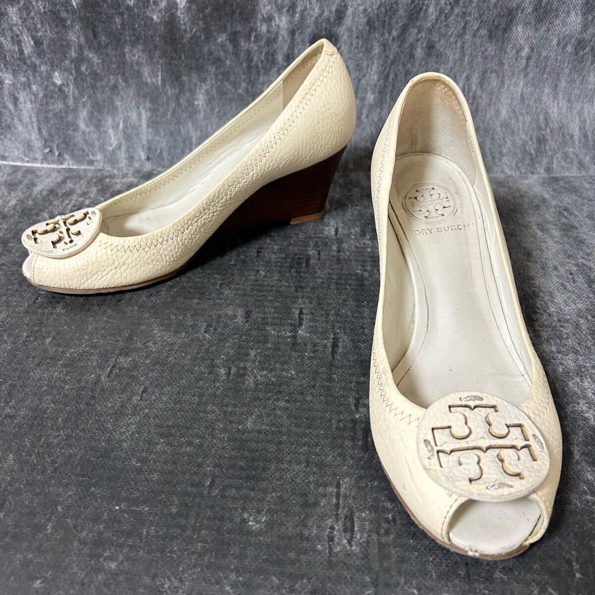 - TORY BURCH トリーバーチ ウェッジパンプス オープントゥ パンプス レザー 6 23cm相当 アイボリー *BQ