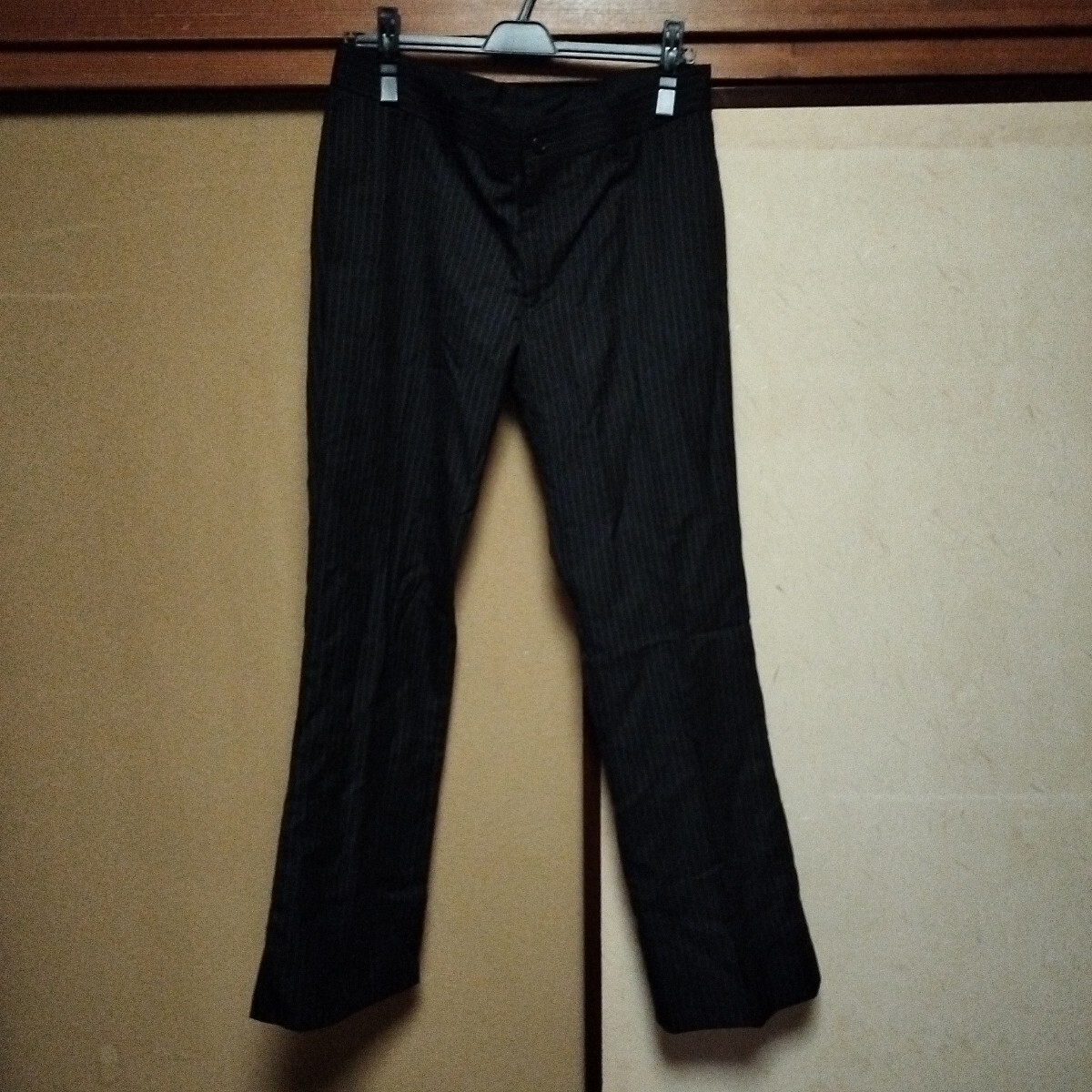 - 日本製T.S.U FAR EASTピンストライプスラックス82cm 黒 ブラック