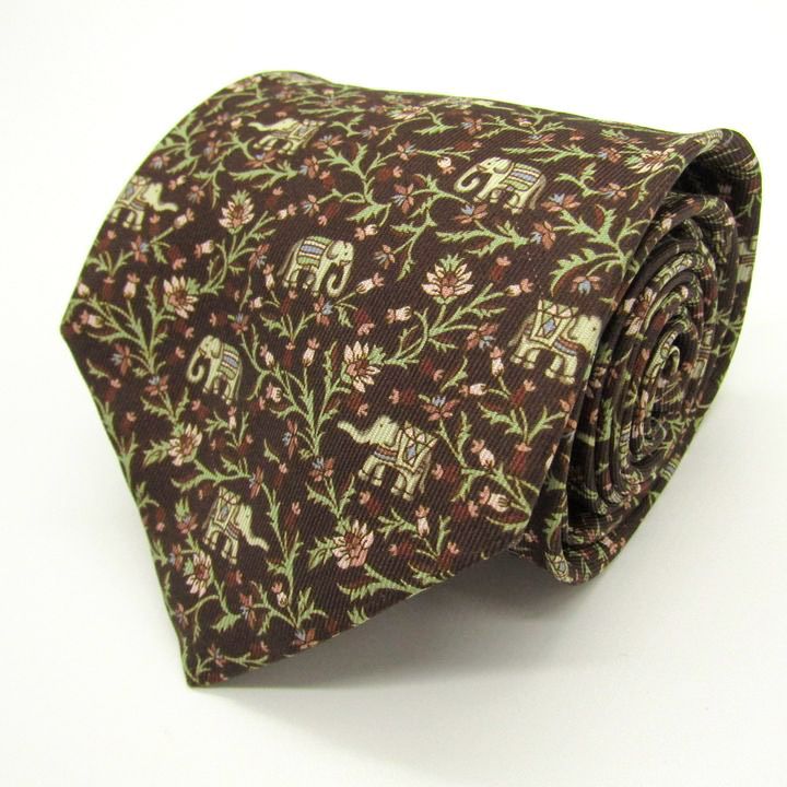 - ジムトンプソン ブランド ネクタイ 総柄 動物柄 ゾウ リーフ柄 シルク PO メンズ ブラウン JIM THOMPSON