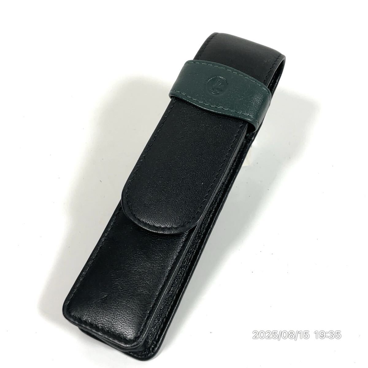 - PELIKAN ペリカン ブランドロゴマーク ブラック×グリーンカラー レザー 革 携帯用 ペンケース 筆記具 文具
