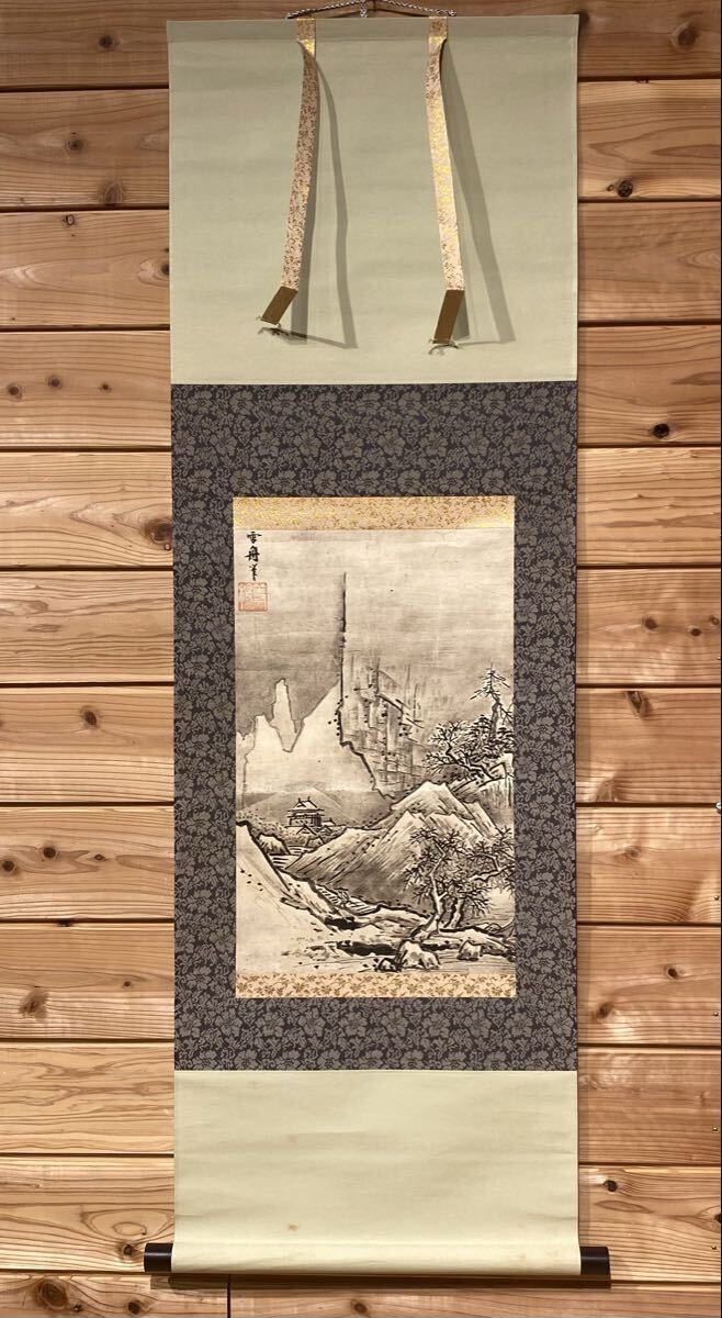 - 【模写】『雪舟 工芸掛軸 秋冬山水図 冬』工芸印刷 国宝 水墨画