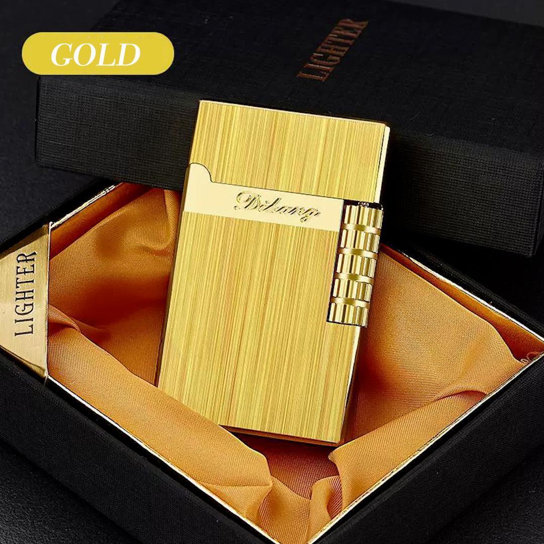 > ヘアライン インスパイア ゴールド 反響板 ローラー式ガスライター ケース付き