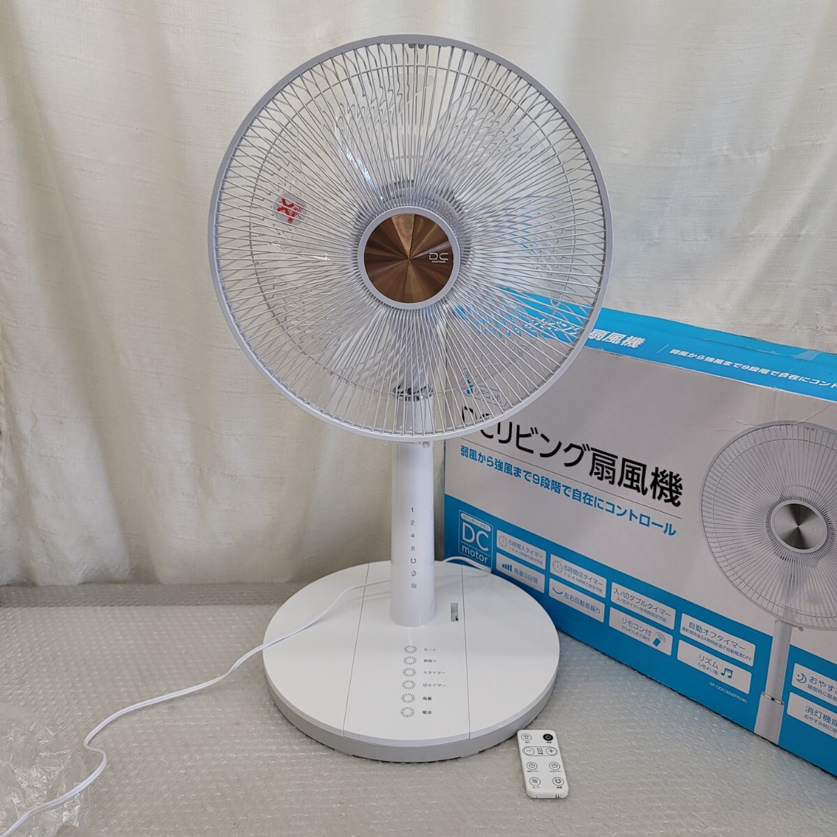 - 5158DCリモコンリビング扇風機 7枚羽根 風量9段階 入切タイマー DCモーター モード標準、リズム、おやすみ
